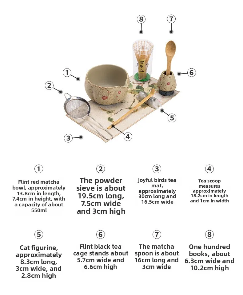 8-Pcs Matcha Set with Matcha Bowl, Bamboo Whisk (Chasen) & Holder Perfect Matcha Kit for Matcha Lovers & Gift Giving